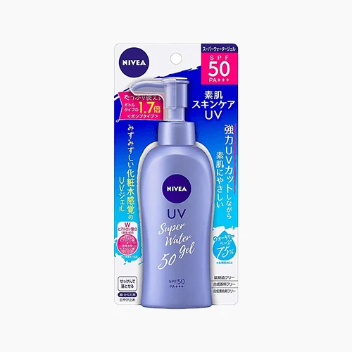 Nivea Sun Protect Super Water Gel Sunscreen features a high uv protection yet it spreads like water and feels lightweight on the skin.